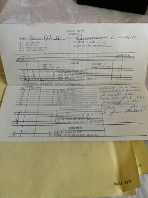 I got an N in Language Arts for oral expression. It kind of sucks to be a child who can't communicate well orally but then has shitty handwriting so can't communicate well that way either. Later I would learn to type, and I've always been quite good at that. So that's nice.